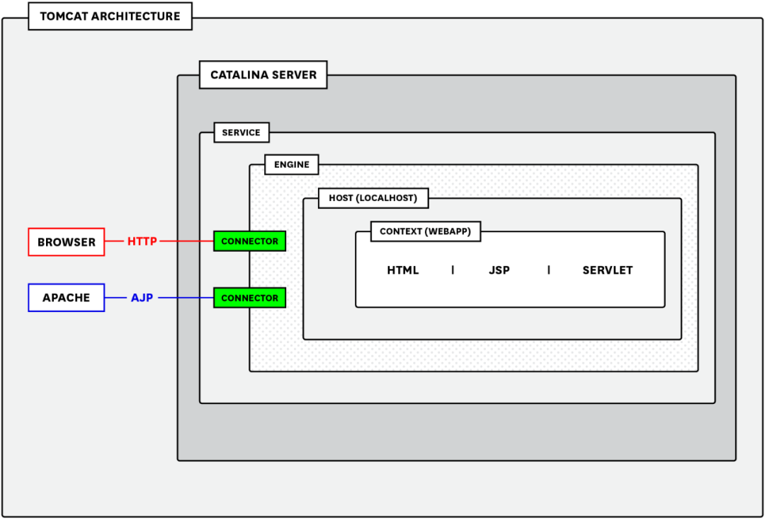 - Context :代表一个应用程序,即为我们开发的一个 war 服务在 webapp 目录下的各个应用,或者一个 WEB-INF 目录以及下面的 web.xml 文件