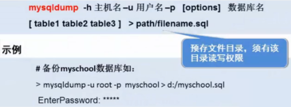 mysqldump -uroot -p123456 -B school >D:/a.sql