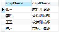 select e.empName,d.deptName from t_employee e inner join t_dept d on e.dept = d.id;查询结果: