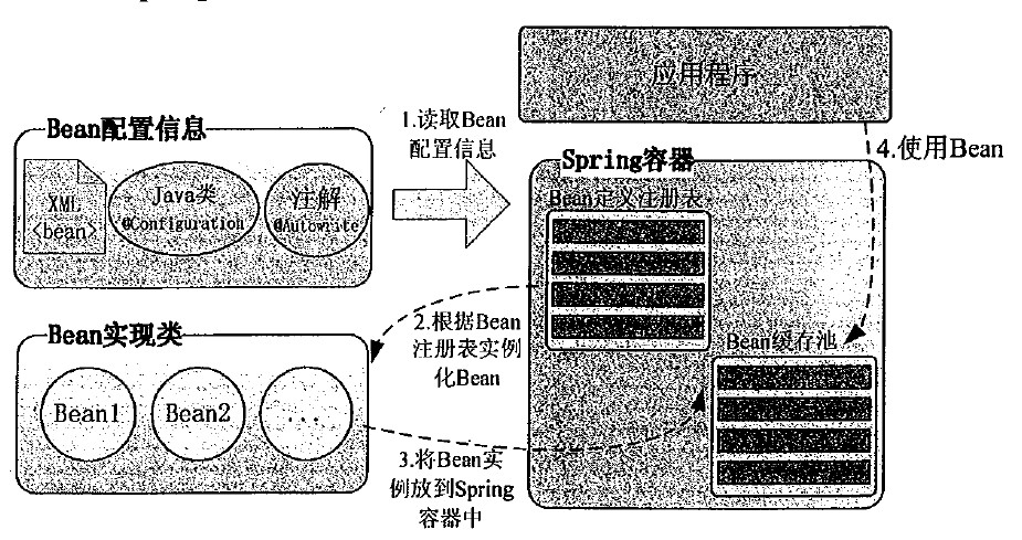 Bean 配置信息定义了 Bean 的实现及依赖关系,Spring 容器根据各种形式的 Bean 配置信息在容器内部建立 Bean 定义注册表,然后根据注册表加载、实例化 Bean,并建立 Bean 和 Bean 的依赖关系,最后将这些准备就绪的 Bean 放到 Bean 缓存池中,以供外层的应用程序进行调用。